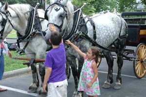 More exciting attractions at RivahFest 2016! This is wonderful opportunity to enjoy open carriage rides at this event offered by Olde Towne Carriage Company service. We have a pair of gray Percherons geldings "Bill & Dan" who will pull an Amish built Oak wagonette that will take 8 to 10 passenger or a 20 passenger hayride wagon. Also we have a 6 passenger wagonette that is easily pulled by "John" our black Standard bred gelding. The team will do tours along Water Lane and ride down past St. Margaret's School & around post office & back. This will give folks a fun filled hayride that will be a unique experience. RivahFest is a wonderful time of the year to go on a horse drawn wagon ride. Olde Towne Carriage Company is the owner operator - if would like to arrange your own special event and arrive in style for your birthday, wedding, proms or homecoming please contact them at 540-371-0094. |