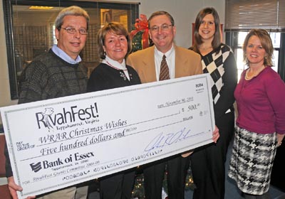 WRAR's Christmas Wishes Rich Morgan and Betty Osburn accept the first $500 RivahFest Grant presented by Ronnie Gill, President of the Chamber of Commerce, and Libbie Franklin and Katherine Newman, Festival Co-Chairs representing the RivahFest Steering Committee.